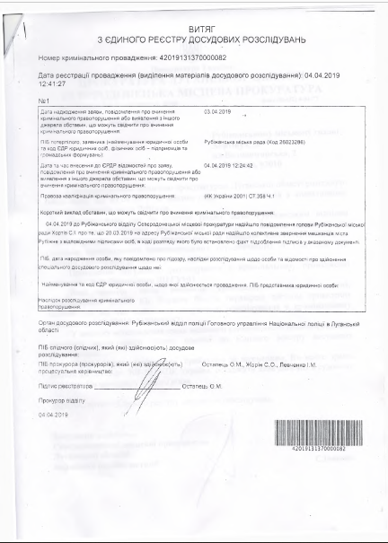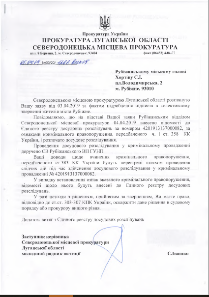 В связи с этим, городской голова просит Северодонецкую местную прокуратуру начать досудебное расследование по факту заведомо ложного сообщения о преступлении и по факту возможной подделки подписей.