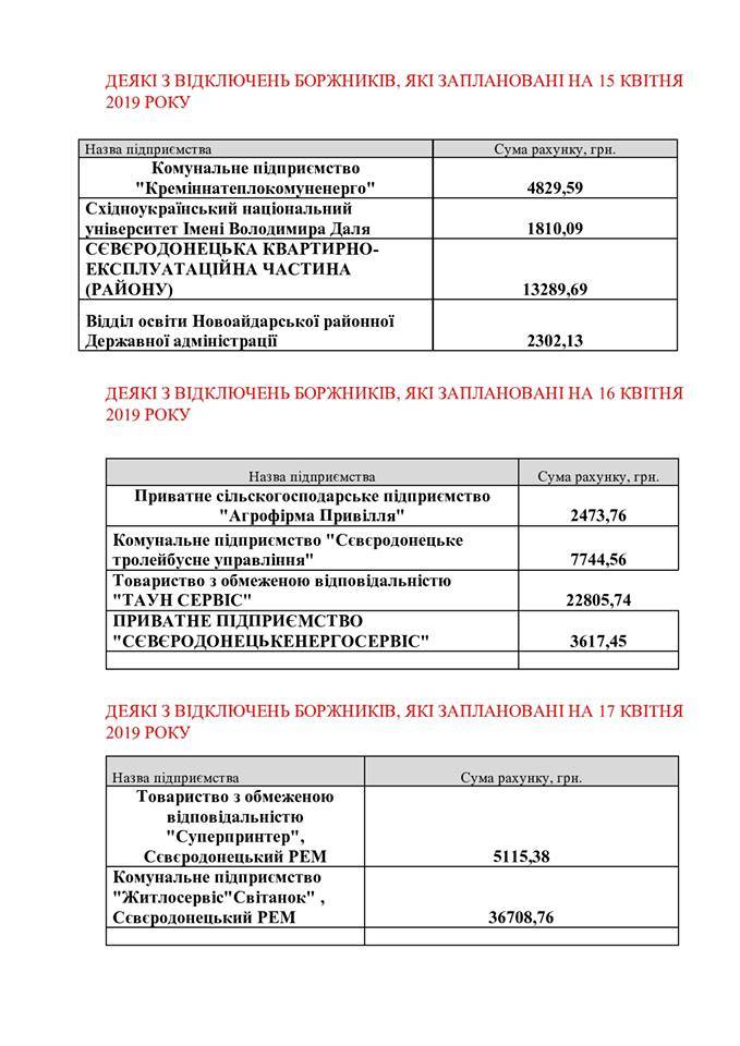 Так, 15, 16 и 17 апреля луганские энергетики планируют провести обесточивания должников в Северодонецке, Кременой и Новоайдаре. ЛЭО обнародовало список запланированных ограничений.