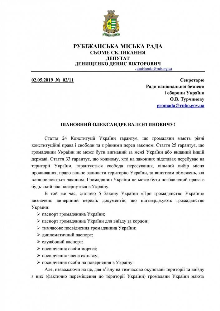 Действующий на сегодня временный порядок контроля за перемещением лиц через линию соприкосновения в пределах Донецкой и Луганской областей противоречит указанным нормам Конституции Украины и Закона Украины «О гражданстве Украины», - считает луганский политик Денис Денищенко.