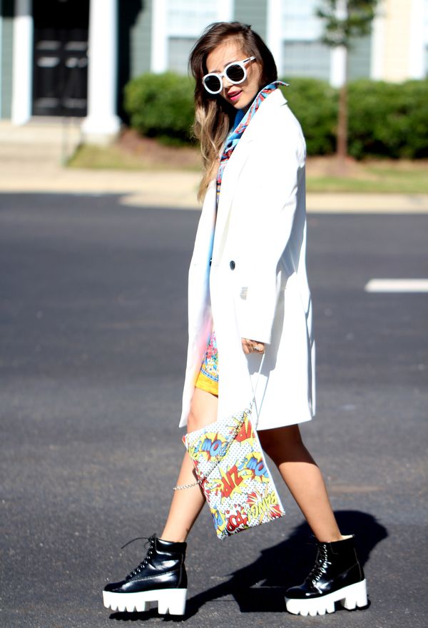 Контрастная подошва или каблук не теряют актуальности. В этом случае необходимо следить за балансом цветов, чтобы их не было слишком много в одном образе. Если обувь однотонная, сумка может быть любая. В случае с двухцветными ботинками, она должна совпадать с одним из тонов. Нюанс! Гораздо более гармонично образ выглядит, когда сумка сочетается с подошвой, а не с основным цветом обуви.