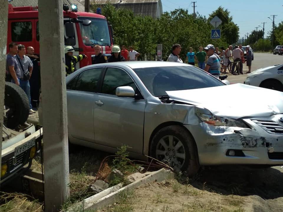 По словам пользователей, столкнулись Toyota Camry и Нива. Также очевидцы пишут, что водителя Нивы увезли на «скорой» в тяжелом состоянии.