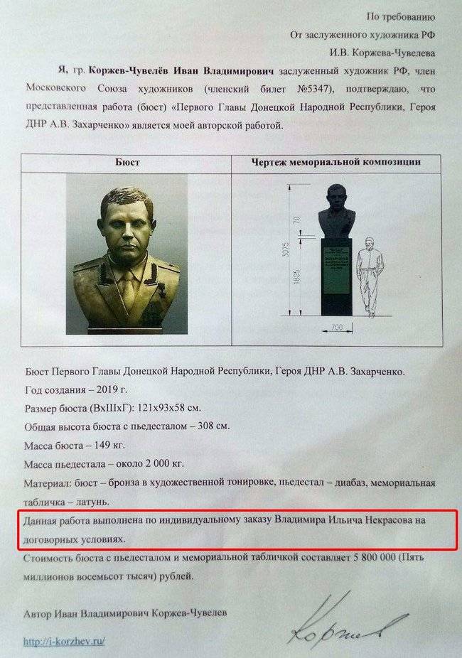 Ранее в сети уже выкладывался проект самого бюста Захарченко.