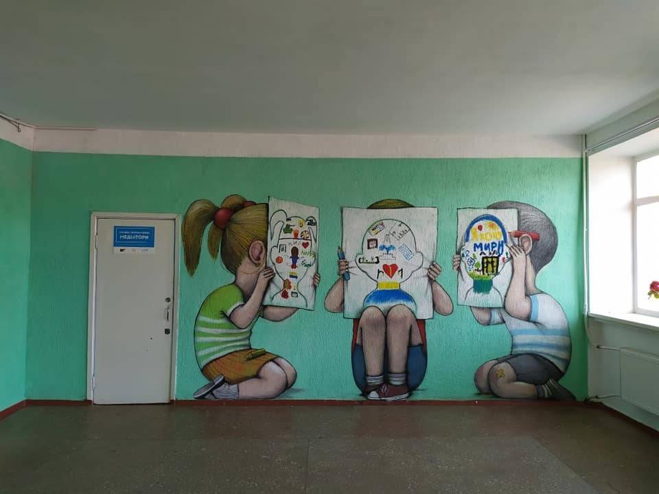 На здании Попаснянской опорной школы № 1 появился мурал, который нарисовал известный художник Жюльен Маллан.