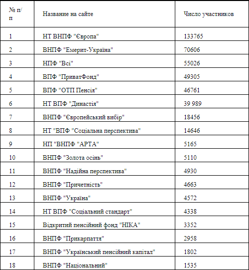 Целый ряд фондов называют себя корпоративными или профессиональными, однако в лицензии это не отражено. Например, профессиональным можно считать пенсионный фонд Независимого отраслевого профсоюза энергетиков (36 тыс. участников). А корпоративным называет себя НПФ Национального банка Украины (12,3 тыс. участников).