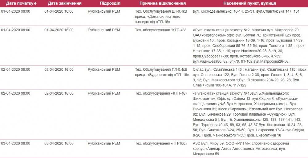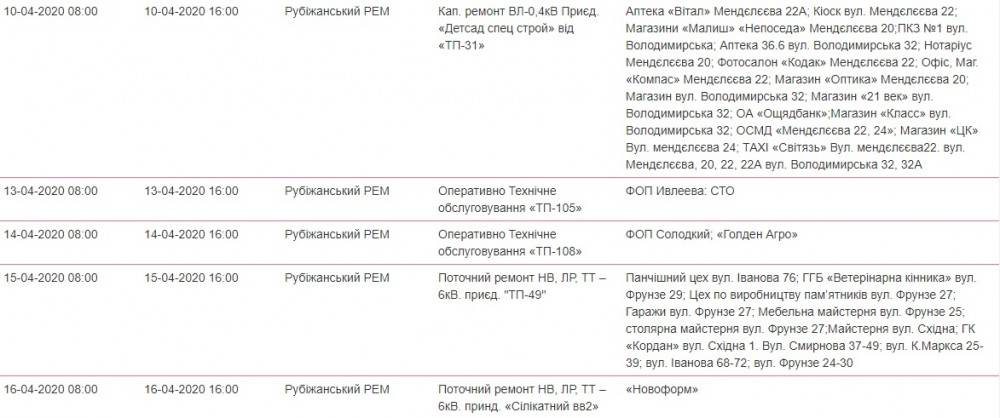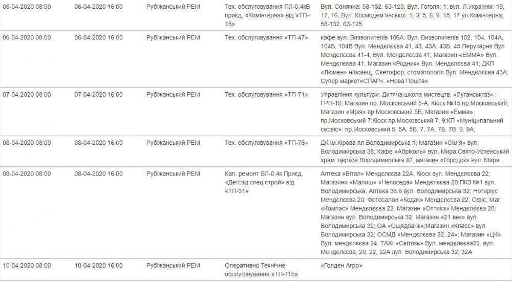 Так, в течение апреля в Рубежном ожидаются плановые отключения света.