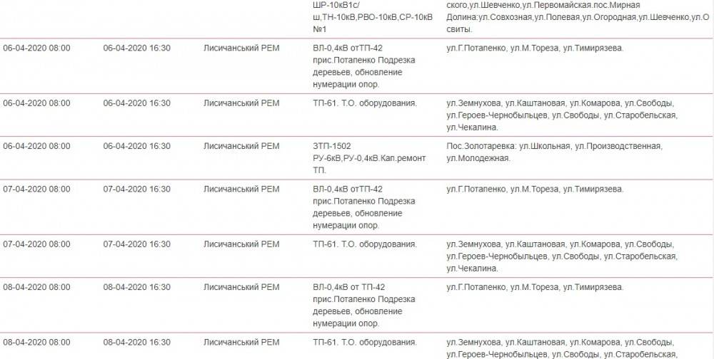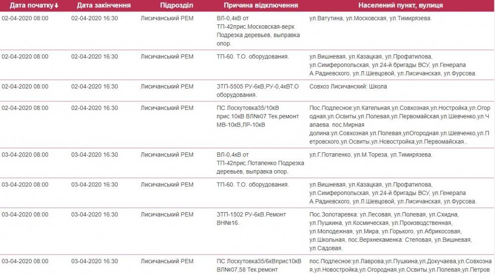 Так, в течение апреля в Лисичанске ожидаются плановые отключения света:
