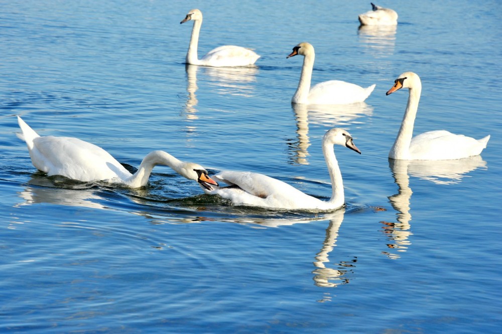 Так, на кадрах, которые автор разместил в Facebook запечатлена стая белых лебедей.