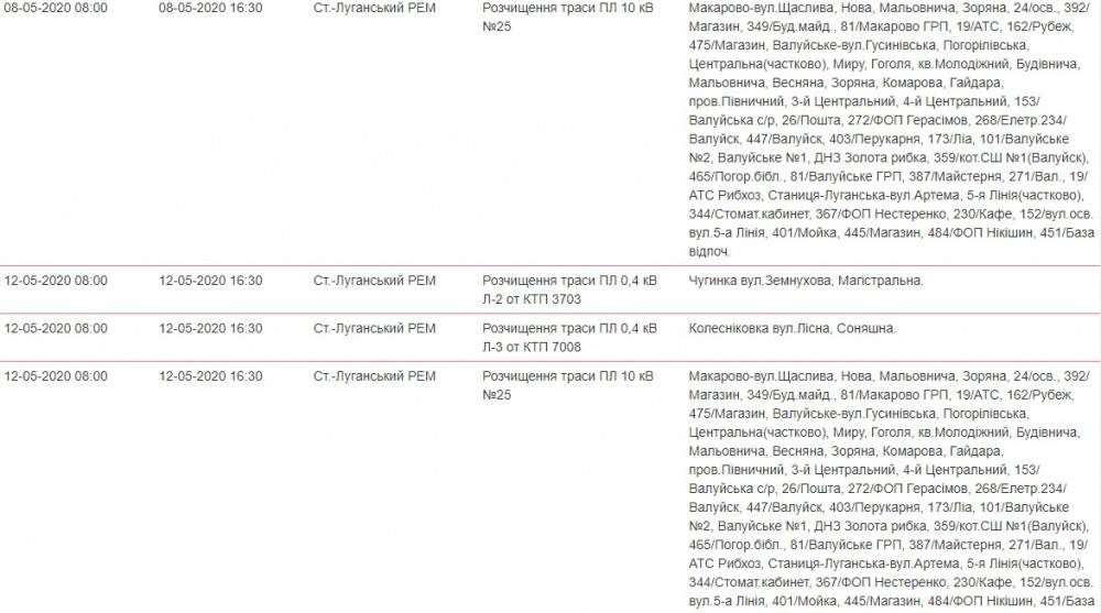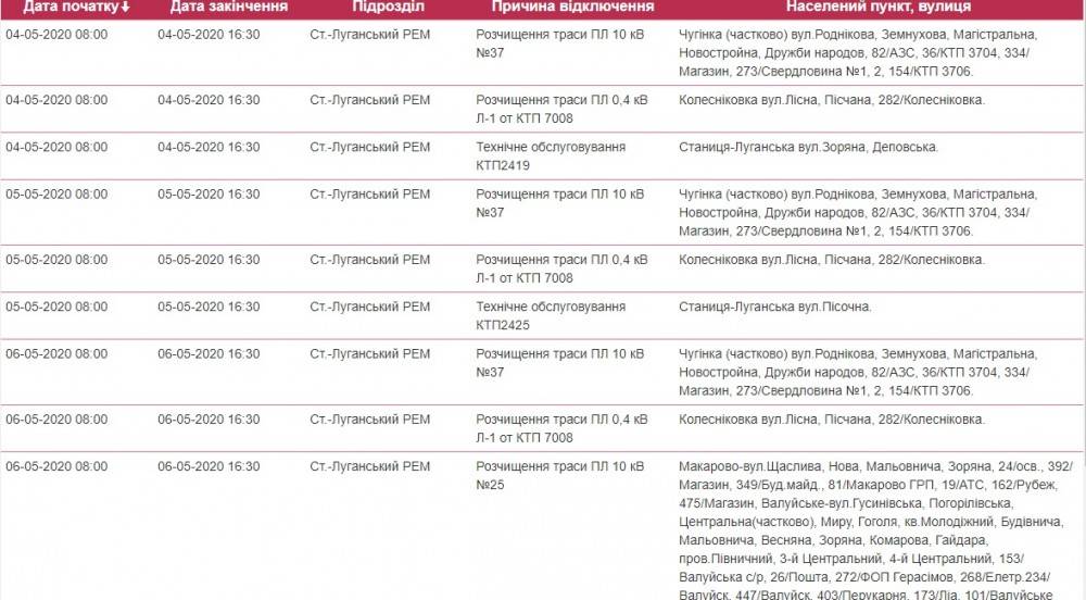 Так, в мае некоторые жители Станично-Луганского района останутся без света в связи с расчисткой трасс ВЛ и техническим обслуживанием.
