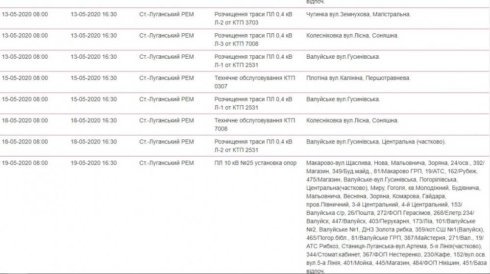 В течение мая в Станице Луганской и районе ожидаются плановые отключения электроснабжения.