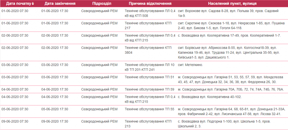 Так, в течение июня в Северодонецке ожидаются плановые отключения света: