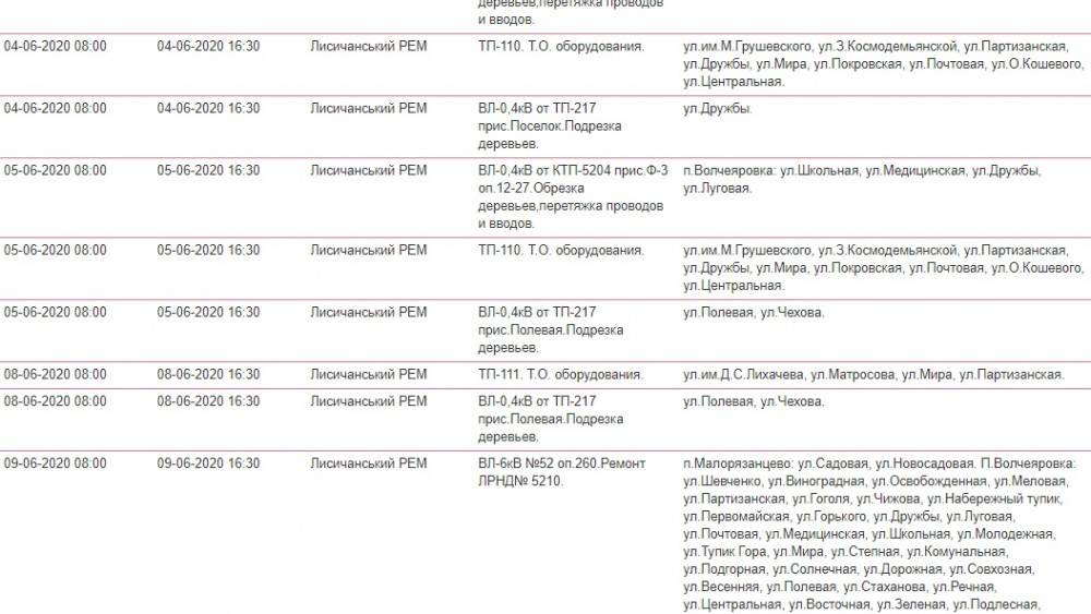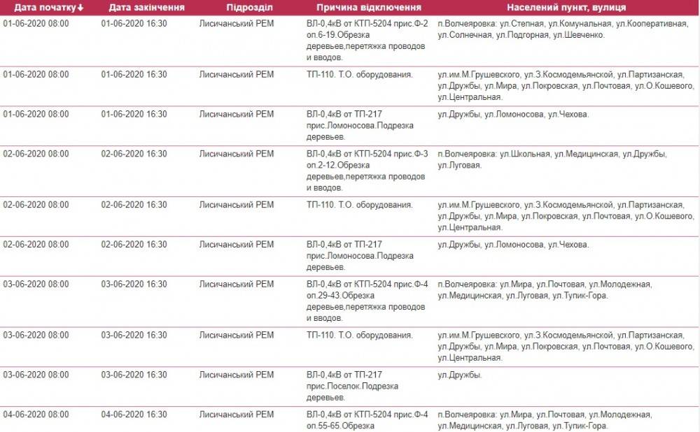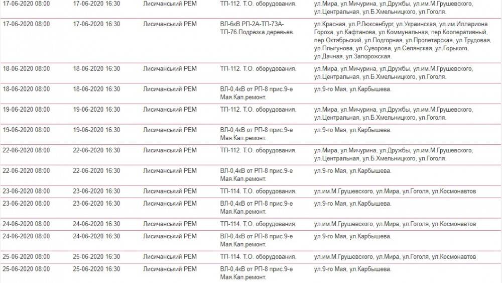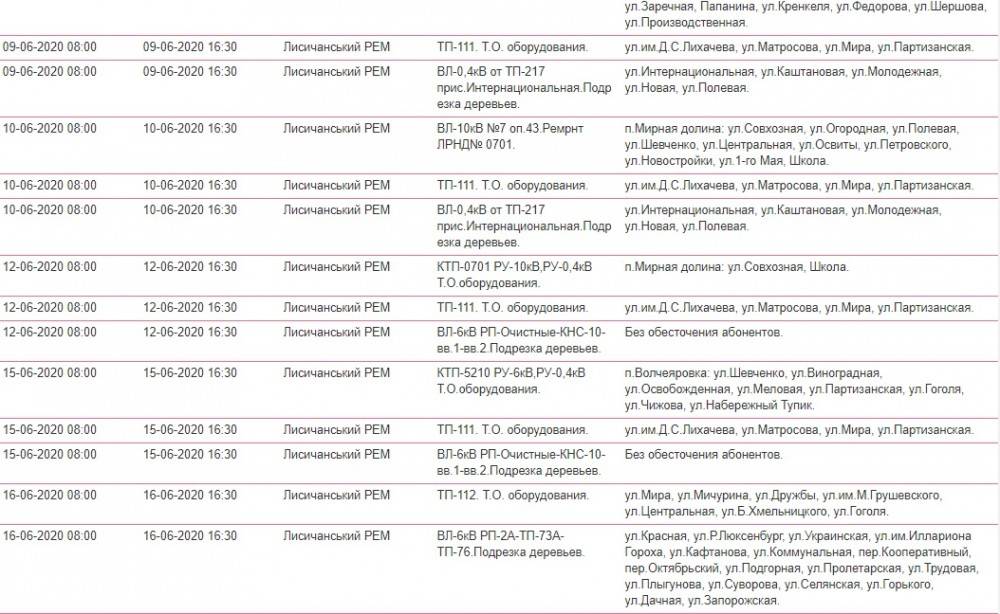 Так, в течение июня в Лисичанске ожидаются плановые отключения света: