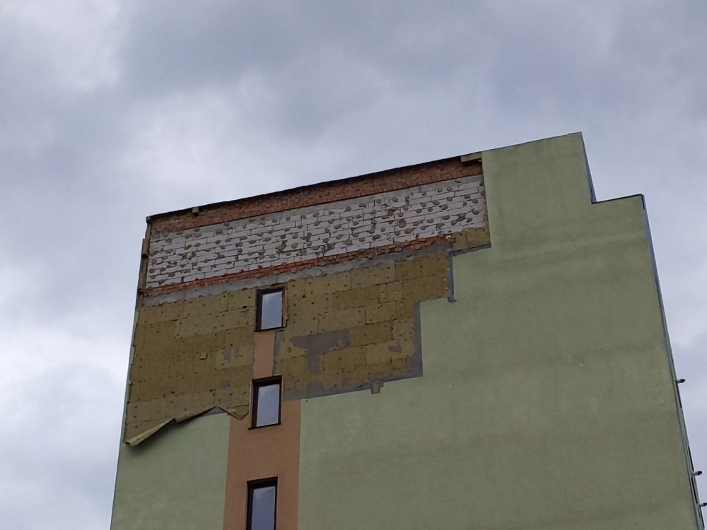 "Вчера во время бури оборвало утепление снова. Два года назад здесь такое уже было. Сколько строили этот дом, а людей все никак не заселят. И вы видите, как строили? Все разваливается на глазах", - комментирует ситуацию местная жительница одного из соседних домов Нина Васильевна.