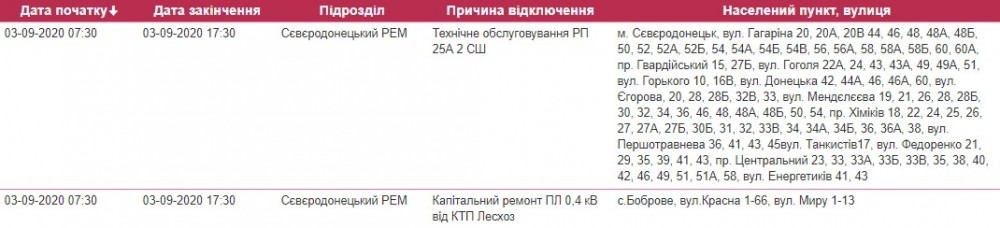 Так, завтра, 3 сентября, в Северодонецке ожидаются плановые отключения света.