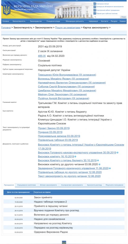 Як зазначено у пояснювальній записці, законопроєкт №2031 сприятиме посиленню соціального захисту осіб з інвалідністю, які не можуть самостійно забезпечувати своє проживання.