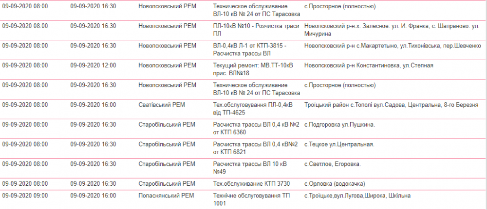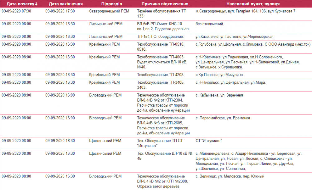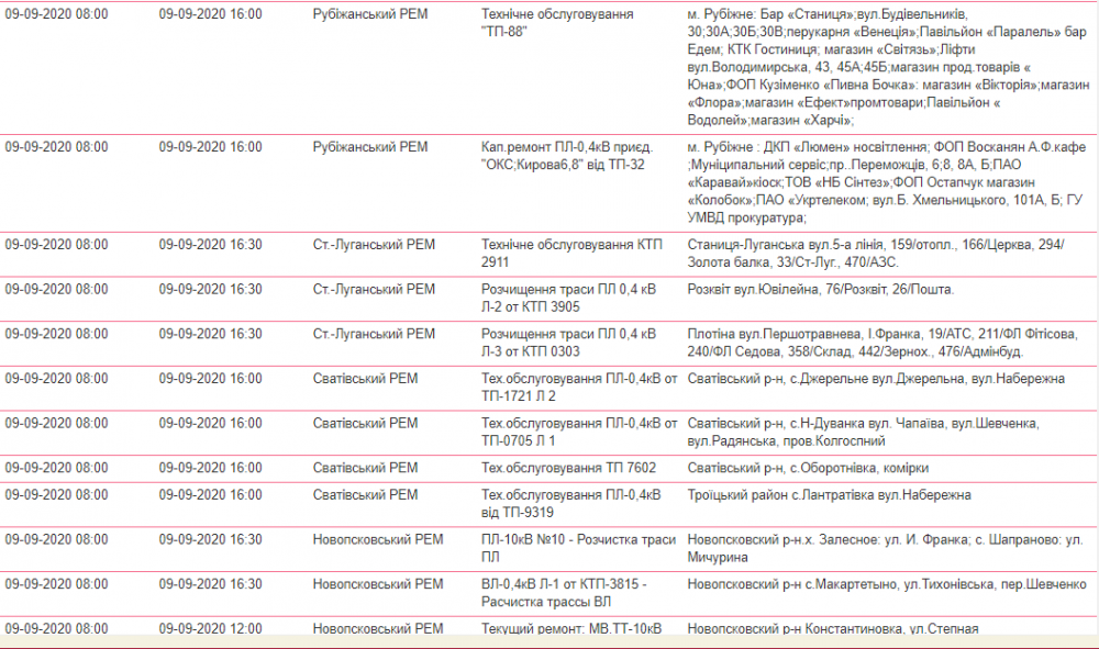 Так, завтра, 9 сентября, в Луганской области ожидаются плановые отключения света.
