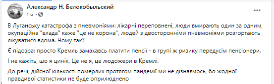 К слову, реального количества умерших в период пандемии мы не узнаем, ведь никакой правдивой статистики не будет обнародовано", - сказано в сообщении.