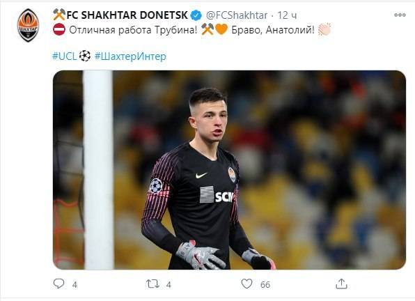Вот как пресс-служба "Шахтёра" оценила своего голкипера в Твиттере: