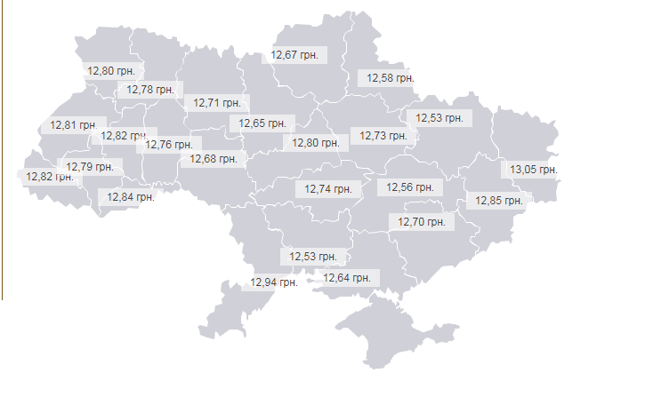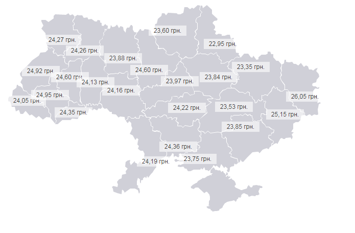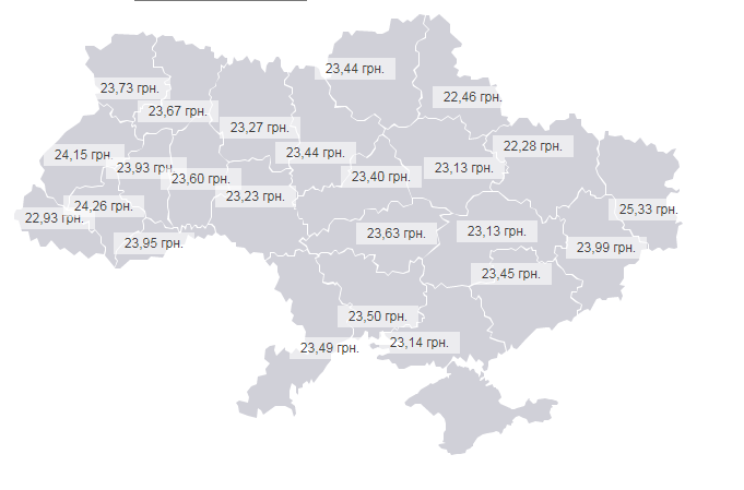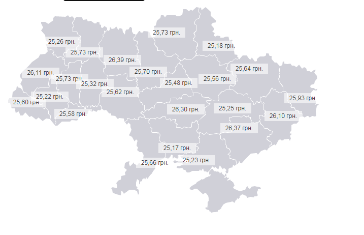 Цена на дизельное топливо в области составляет 25 гривен 33 копейки.
