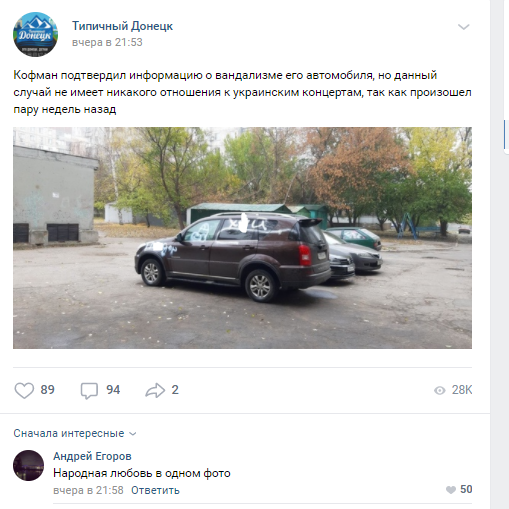 Инцидент произошел несколько недель назад, но известно стало о нем только сейчас. Сам Кофман информацию о надругательстве над своим транспортным средством подтвердил.