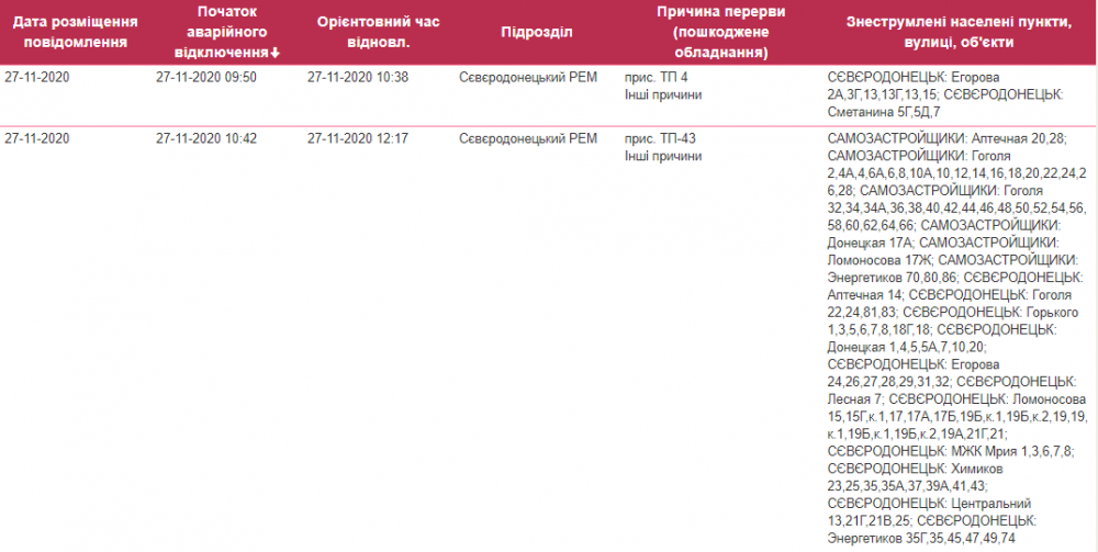 Сегодня, 27 ноября, в некоторых районах Северодонецка отключили электричество.