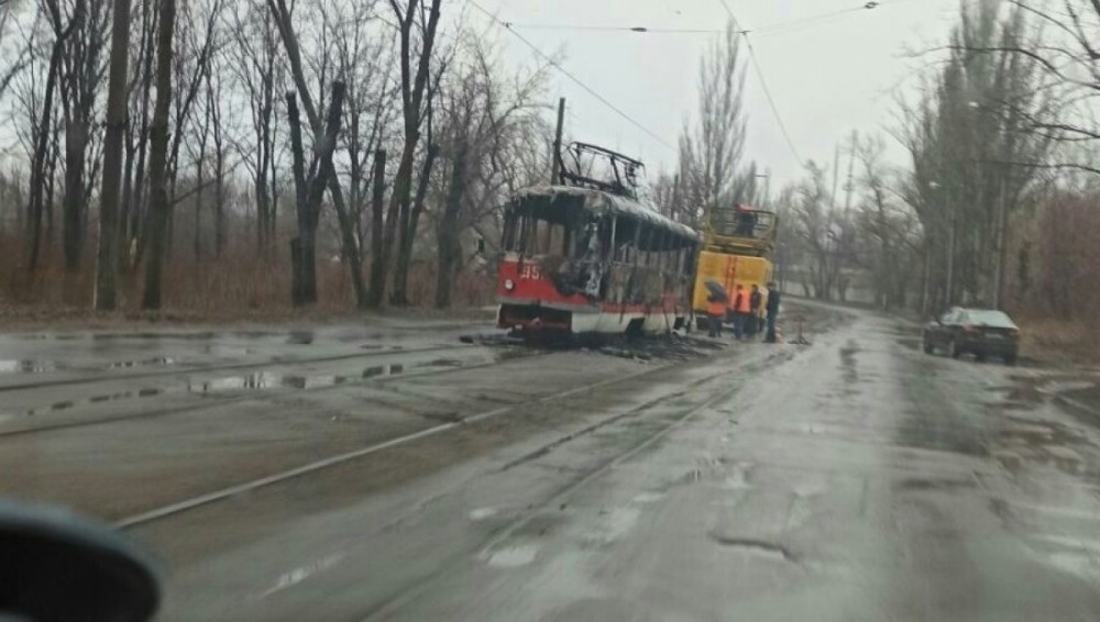Утром, 17 марта, в Пролетарском районе оккупированного Донецка загорелся трамвай.