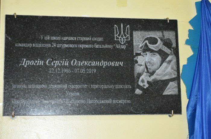 Начались мероприятия с открытия в школе №20 мемориальной доски старшему солдату, командиру отделения 24-го штурмового отдельного батальона "Айдар" Сергею Дрогину, погибшему от пули вражеского снайпера в мае 2019 года.