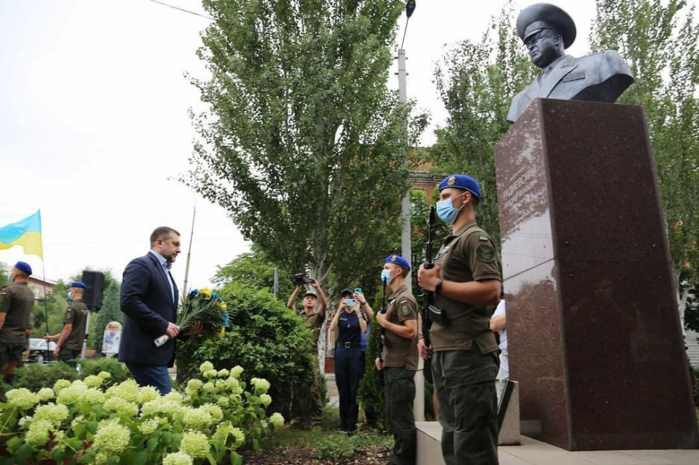 На площади Мира руководство ЛОГА и ВГА, военнослужащие и благодарные местные жители минутой молчания почтили память всех тех, кто отдал жизнь за Украину, а также возложили цветы к памятнику генерал-майору Александру Радиевскому, под командованием которого бойцы Криворожской бригады Нацгвардии освободили Северодонецк от оккупации.