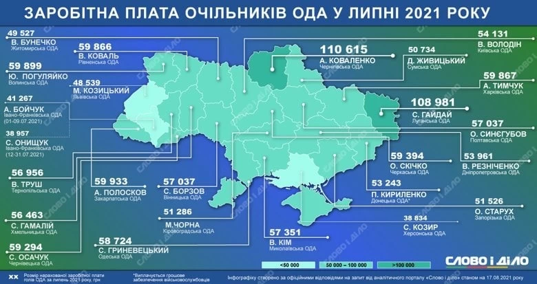 Аналитический портал "Слово и дело" показал, какие зарплаты за июль были у глав областных администраций.