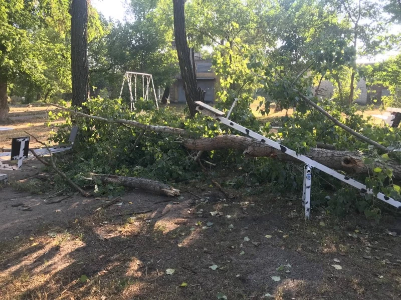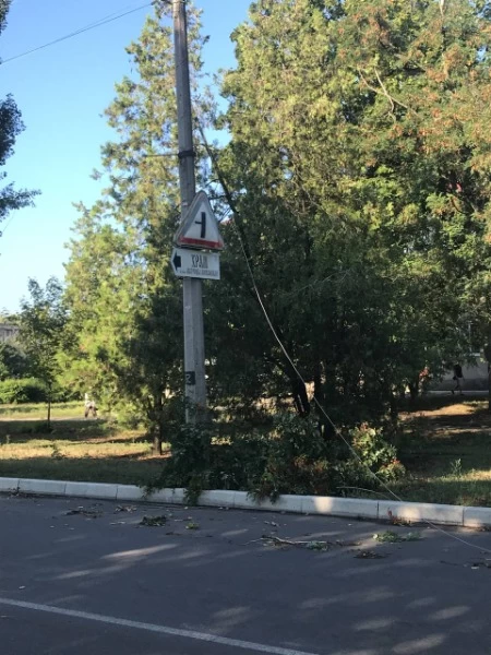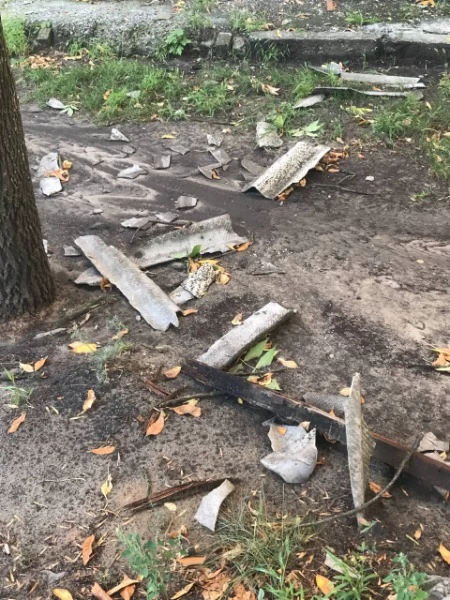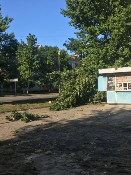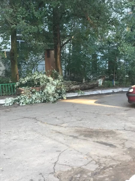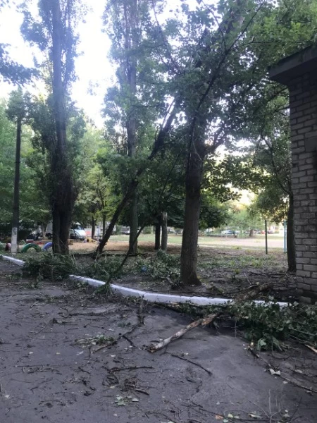 Стихия бушевала недолго, но успела натроворить беды. По всему городу можно наблюдать поваленные деревья и столбы.