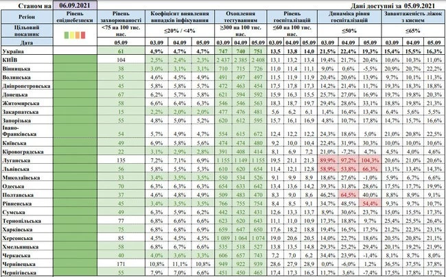 Также превышение нормы выявления новых случаев инфицирования зафиксировано в среднем по всей стране. Так для Украины этот показатель на утро 6 сентября составляет 4,7% при норме для "зеленой" зоны не более 4%.