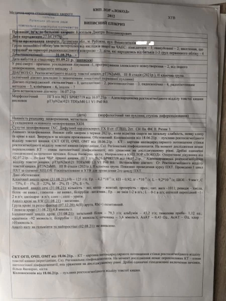 Несколько месяцев назад Дмитрию Киселеву из Рубежного был поставлен страшный диагноз - рак (Аденокарцинома сигмовидной кишки стадия 3В).