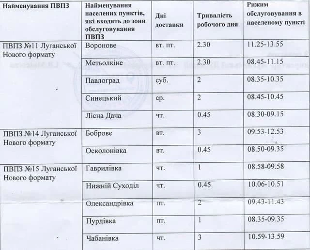 Луганский филиал АО "Укрпочта" предоставляет график работы передвижных отделений почтовой связи. Об этом сообщает Северодонецкая ВГА.