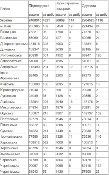 Также за минувшее воскресенье было госпитализировано 2092 человека, выздоровели - 1116, умерло - 114. За сутки в Украине сделали 30 587 тестов: методом ПЦР - 16 214, методом ИФА - 2525, экспресс-тестами - 11 848.