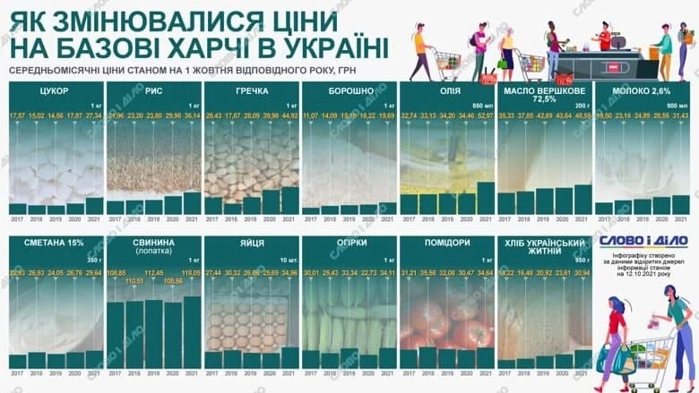 Ежегодно цены на большинство популярных продуктов в Украине постепенно возрастают. С 2017 года некоторые позиции подорожали почти вдвое, другие – несколько меньше, передает «Слово и дело».