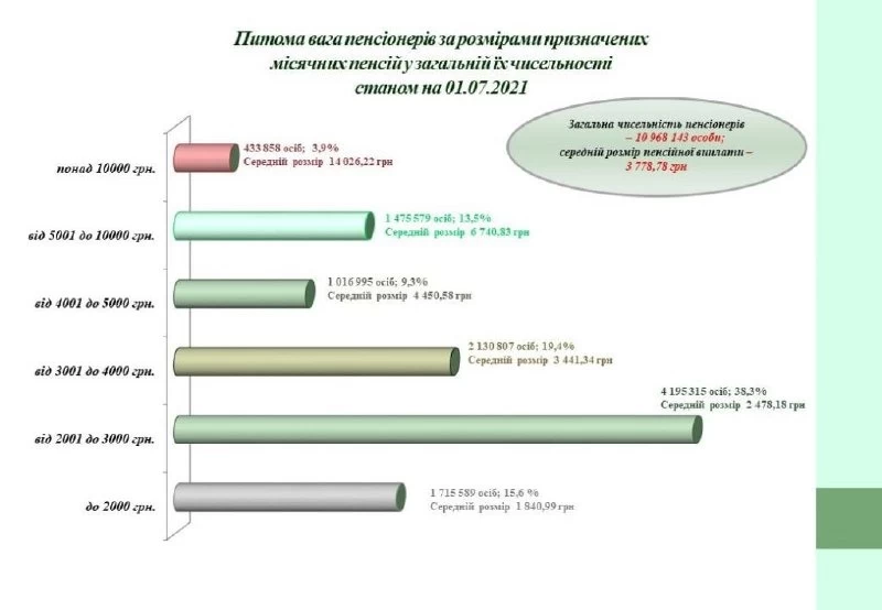 • более 10000 гривен - 4,3%, 471 646 человек, средняя пенсия - 13 983,26 гривен.