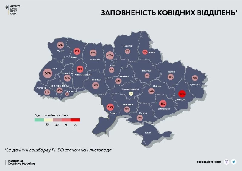 - Донецкая область - занято уже 90% коек (3504 человека госпитализированно с COVID-19),