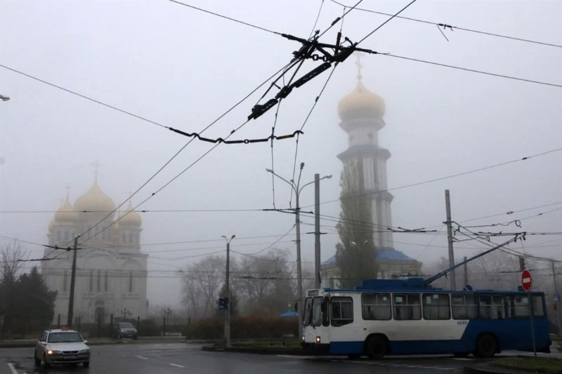 Вчера туманом накрыло оккупированный Донецк.