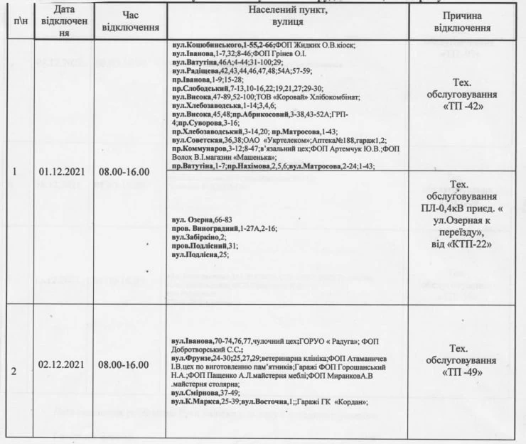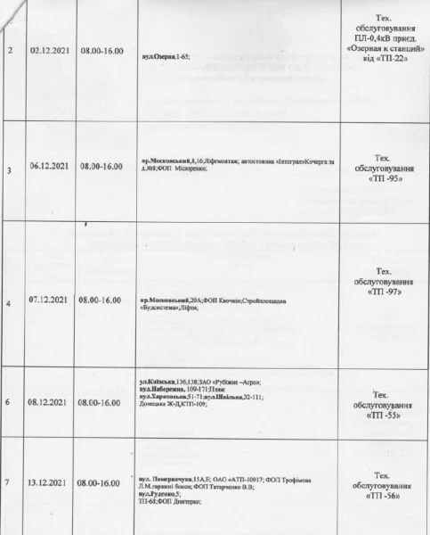 Так, в течение декабря в Рубежном ожидаются плановые отключения электроэнергии по таким адресам: