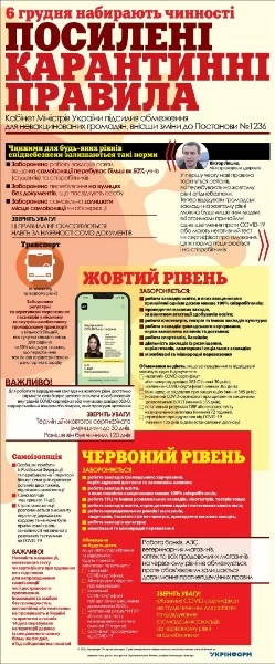 С 6 декабря ограничения ужесточаются для невакцинированных - и в "желтой", и в "красной" областях, - но находиться на улице без документов запрещено всем. Об этом сообщает "Укринформ".