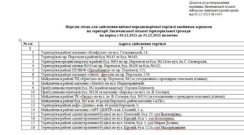 Об этом сказано в распоряжении главы Лисичанской ВГА.