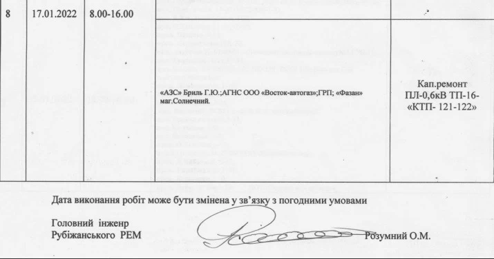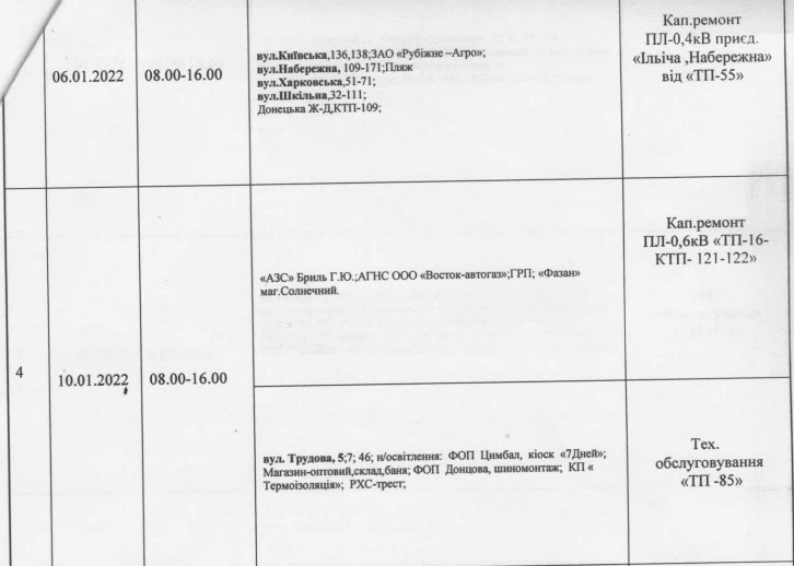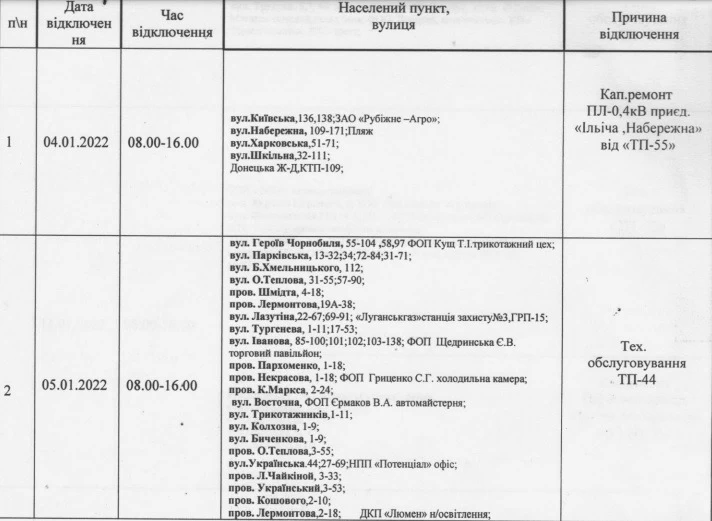 В Рубежном ожидается плановое отключение электроэнергии в январе 2022 года.