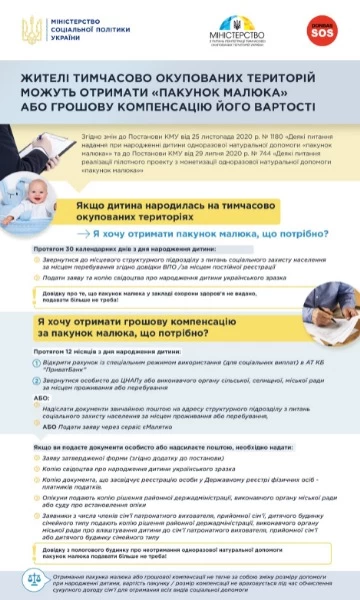 Отныне жители временно оккупированных территорий Украины могут получить "пакет малыша" или денежную компенсацию его стоимости.