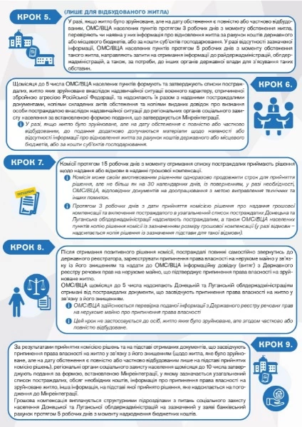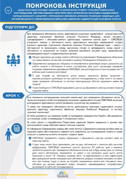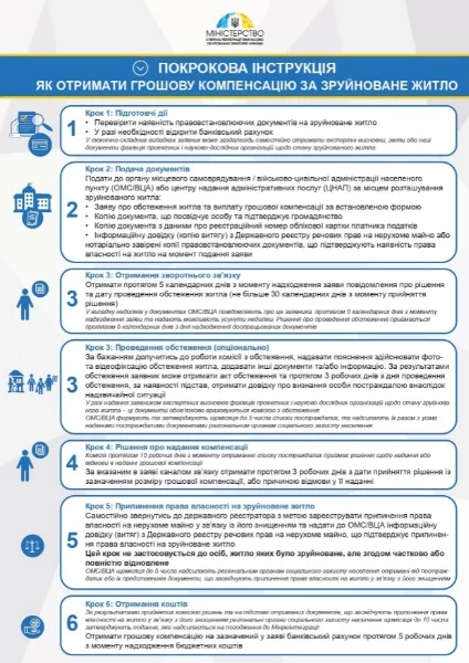Министерство по вопросам реинтеграции временно оккупированных территорий Украины опубликовало инструкцию получения денежной компенсации за разрушенное войной жилье, а также порядка предоставления и определения размера компенсации местными властями.