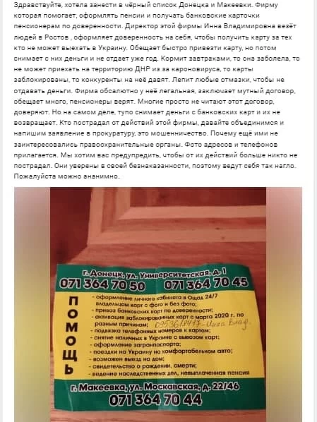 Также пользователь поведал и о других видах посреднических услуг для жителей неподконтрольного Донбасса.
