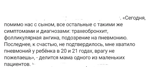 "Многие родители говорят, что начало болезни сопровождается кишечным расстройством и температурой до 39 градусов. Вряд ли это обычная ОРВИ, как нас пытаются убедить представители власти.