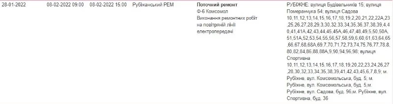 Во вторник, 8 февраля, некоторые жители Луганщины останутся без света.