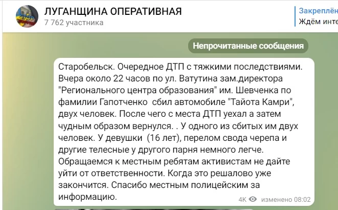 Свою версию событий опубликовали авторы Телеграм-канала "Луганщина оперативная":