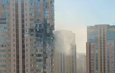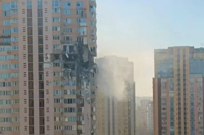 В результате попадания снаряда войск РФ в Киеве частично поврежден многоэтажный жилой дом по проспекту Лобановского, 6 А. Предварительно жертв и пострадавших нет. Проводится эвакуация
