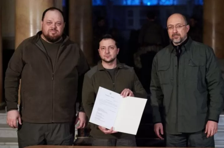 "Исторический документ. Заявка на членство в Европейском Союзе, подписанная Президентом Украины в Киеве 28.02.22", – отметил он.