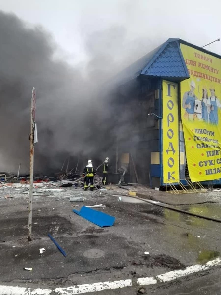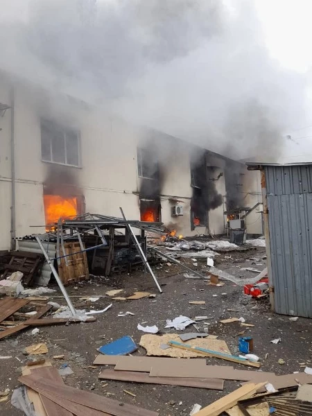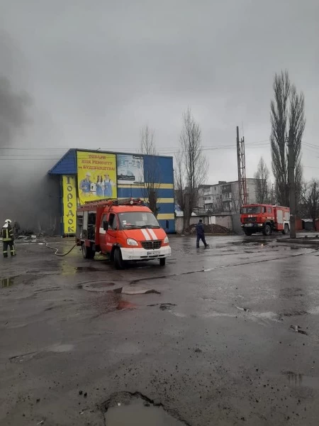 В 11:30 в результате обстрела Лисичанска горит магазин "Городок" на пр. Победы 142. Также прямое попадание в пивзавод с последующим возгоранием. По прибытию было установлено, что открытое горение не обнаружено, далее проводится разведка.